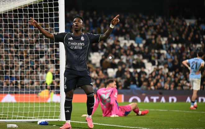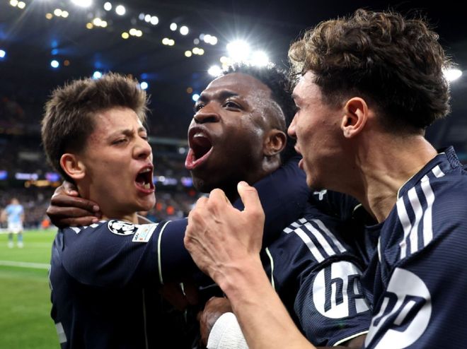 巴尔韦德开场不久就浪费了单刀机会。之后曼城疯狂进攻,但是,谢尔基和罗德里等人的射门都被库尔图瓦化解。伯纳多-席尔瓦犯下了致命错误。他手球送点,自己被罚下,导致曼城少一人作战。维尼修斯点射破门首开纪录。虽然之后哈兰德扳平了比分。但是,在最后时刻,曼城还是再次丢球。依然是维尼修斯的进球,把最终的比分定格为2-1,皇马绝杀曼城!
