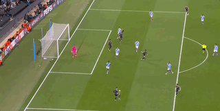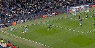 第17分钟,巴尔韦德直塞,维尼修斯左路内切后射门中柱弹出,皇马二次进攻,维尼修斯禁区右侧再次射门,B席在门线上用手臂将球挡出,VAR复核后确认B席手球,主裁判蒂尔潘判罚点球,并将曼城队长红牌罚下。