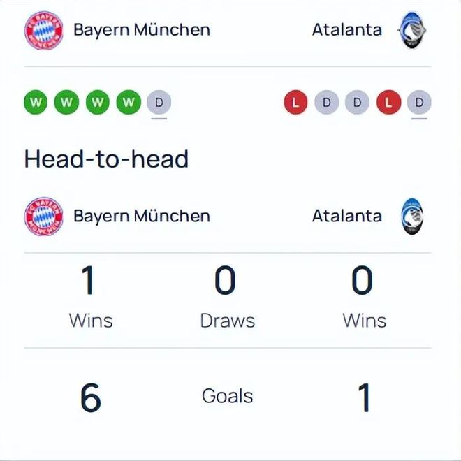数据肯定了拜仁的实力优势,但考虑到巨大领先优势和严重伤情,拜仁可能会以较低消耗完成比赛。估计拜仁不会太耗体力,只要确保晋级就够了,哪怕是给亚特兰大破门机会,也是无妨。