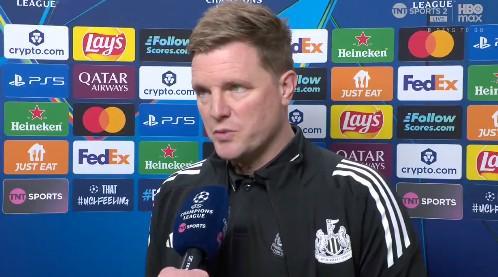 欧冠1/8决赛次回合,纽卡客场对阵巴萨,纽卡主帅埃迪-豪赛前接受了TNT体育的采访。