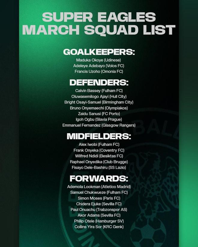 北京时间3月19日,尼日利亚国家队公布了他们3月国际比赛日的大名单,马竞前锋卢克曼领衔,目前效力于加拉塔萨雷的奥斯梅恩并未得到征召。