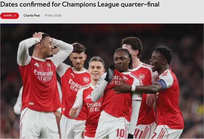 官方:阿森纳在欧冠对阵葡萄牙体育的比赛时间已经确定。