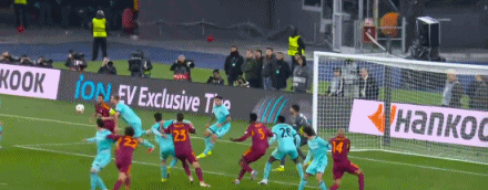 第32分钟,罗马角球机会,恩迪卡头球破门,罗马1-1
