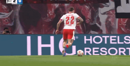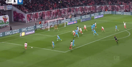 第44分钟,迪奥曼德低传后点,格鲁达推射破门完成双响,莱比锡4-0