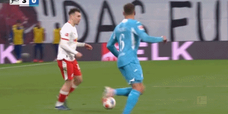 第17分钟,格鲁达门前补射破门先拔头筹,莱比锡1-0霍芬海姆