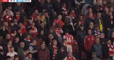 第85分钟,镜头给到部分阿森纳球迷提前退场