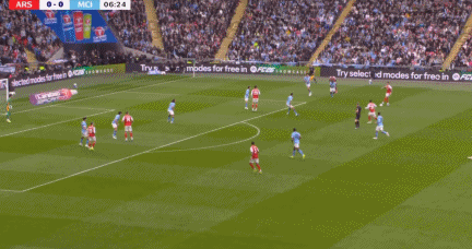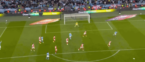 第64分钟,努内斯传中,奥赖利头球梅开二度,曼城2-0领先阿森纳!