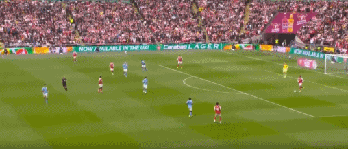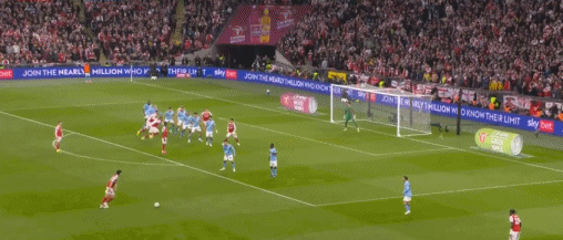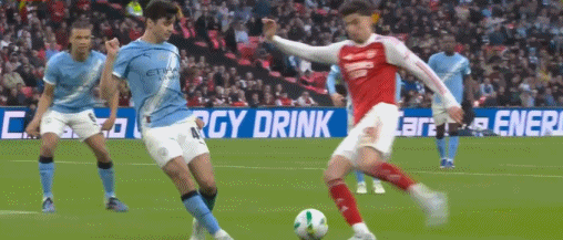 第49分钟,球最后碰到哈弗茨的脚上出了底线,裁判判给阿森纳角球