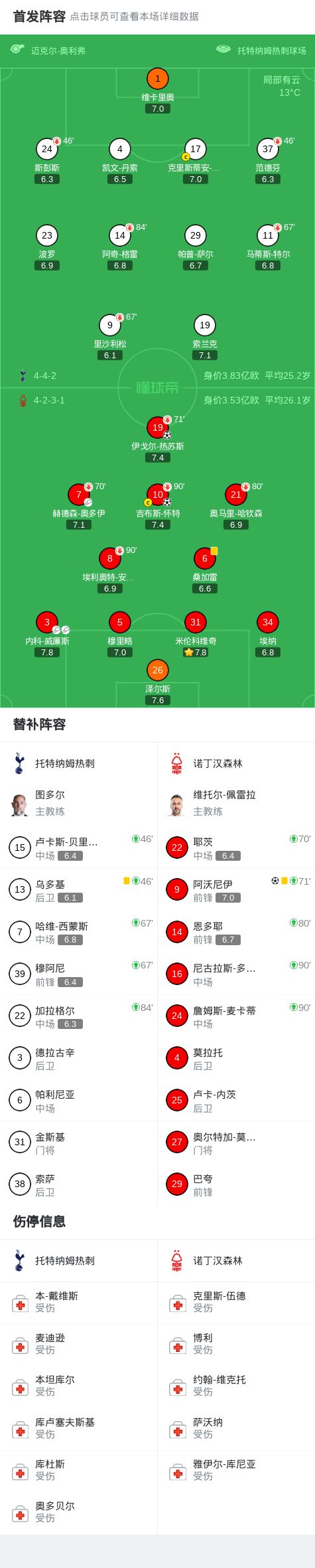 第87分钟,阿沃尼伊门前抢点破门,热刺0-3落后森林!