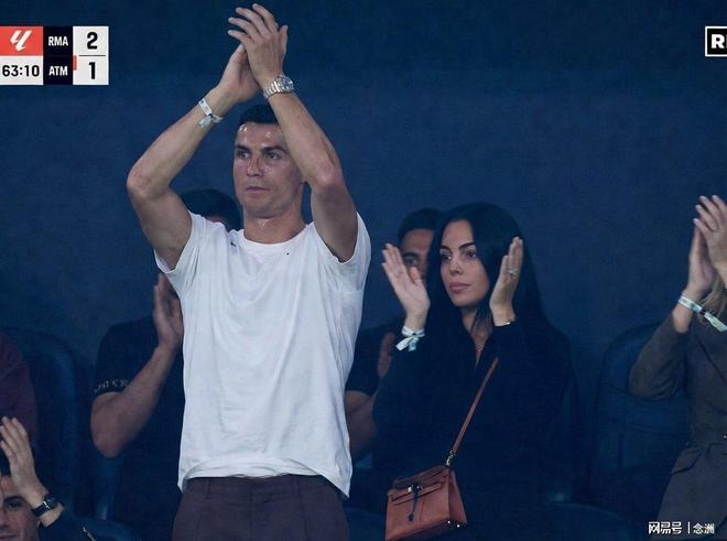 上半场第33分钟,卢克曼破门。不过下半场第52分钟,布拉欣-迪亚斯造点,维尼修斯点射。第55分钟,巴尔韦德破门,帮助皇马反超比分,C罗和乔治娜起立鼓掌。