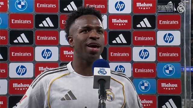 梅开二度帮助皇马在联赛主场3-2力克马竞后,前锋维尼修斯接受了俱乐部官网的采访。