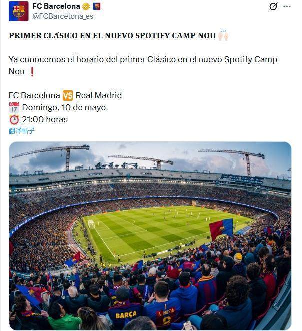 新诺坎普首场国家德比!巴萨vs皇马北京时间5.11凌晨3点开球