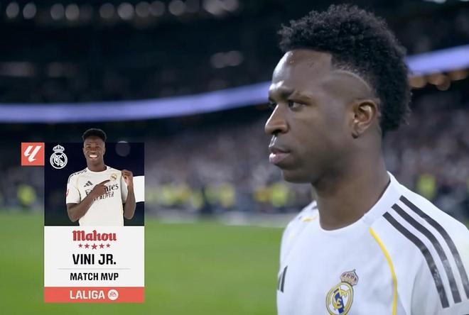 西甲第29轮,皇家马德里主场3-2击败马德里竞技,此役上演梅开二度的皇马前锋维尼修斯当选西甲官方全场最佳球员。