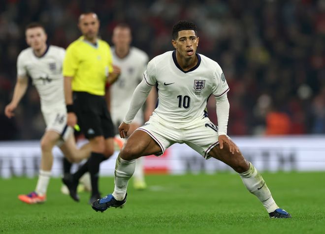 但实际上,贝林厄姆这届预选赛几乎是个“旁观者”。英格兰打的6场比赛,他只上了2场:对塞尔维亚踢了14分钟,对阿尔巴尼亚踢了84分钟。