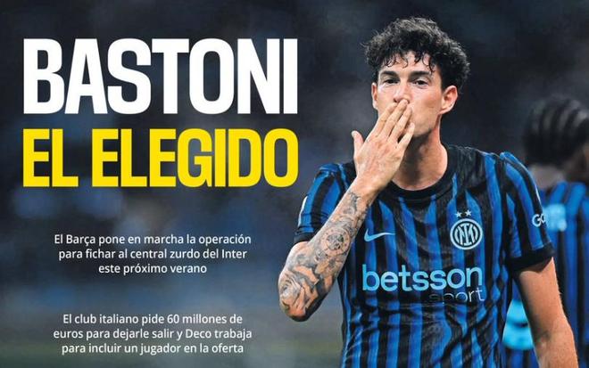 《每日体育报》认为,巴萨对巴斯托尼的追逐应该会在世界杯前完成,无论最终的结果如何。