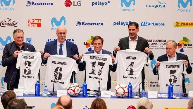 马德里市政府日前举办了一场新一届“比森特-德尔-博斯克足球学院”活动的发布会,该活动将在2026年巡回西班牙多个城市。活动的东道主是马德里市长马丁内斯-阿尔梅达,陪同他出席的有前西班牙国家队主教练博斯克、哈维尔-克莱门特、卡马乔以及费尔南多-耶罗。