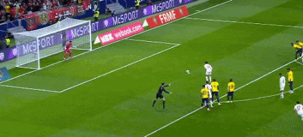 第12分钟,普拉塔头球攻门,皮球高出球门